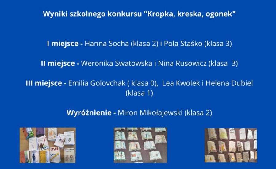 Uprzejmie informujemy, że został rozstrzygnięty konkurs na komiks o literkach z okazji Międzynarodowego Dnia Języka Ojczystego „Kropka, kreska, ogonek”. W konkursie uczestniczyli uczniowie klas 0 – 3.