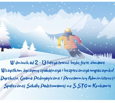 W dniach od 2 - 13 lutego trwać będą ferie zimowe. Uczniowie ostatni raz przychodzą do szkoły w