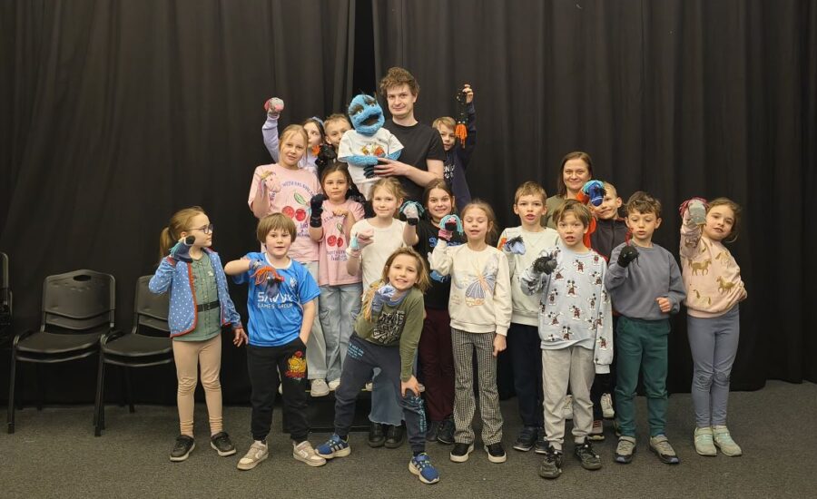 Uczniowie klasy 2 wybrali się do Teatru Groteska na warsztaty „Stwórz swoją pacynkę i opowiedz jej historię". Aktor Paweł Kuźma i jego towarzysz Pan Smrodek pokazali dzieciom różne lalki teatralne oraz nauczyli jak