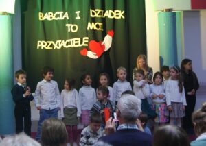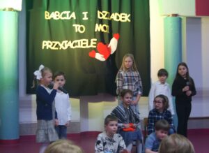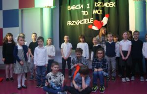 27 stycznia uczniowie klas 0-3 wraz z wychowawczyniami zaprosili swoje babcie i dziadków na wspólne obchody Dnia Babci i Dziadka. Przygotowali dla nich program artystyczny złożony ze scenek teatralnych, piosenek i tańców. Na koniec złożyli życzenia i zaprosili na słodki poczęstunek. Miło było zobaczyć, jak duża więź pokoleniowa łączy zebrane rodziny. Dzieci pokazały, jak bardzo zależy im na dziadkach i dawały z siebie wszystko. Dziadkowie byli wzruszeni i zachwyceni tak miłym przyjęciem.