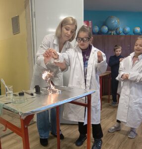 W ramach omawiania lektury „Rany Julek, o tym jak Julian Tuwim został poetą” uczniowie klasy drugiej uczestniczyli w eksperymentach chemicznych i tak jak mały Julek przenieśli się w świat tajemniczych wybuchów. Pod czujnym okiem Pani Izy wszystko odbyło się bezpieczne