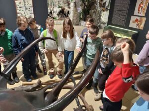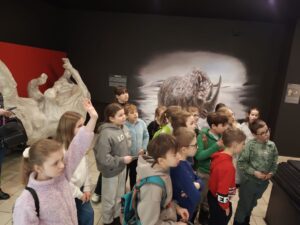19 lutego, trzecioklasiści wybrali się na wycieczkę do Muzeum Przyrodniczego na warsztaty pt. „Wielkie polowanie”, podczas których uczniowie uczestniczyli w pracy archeologa, wykonywali samodzielnie malowidła naskalne, a przy tym świetnie się bawili. Po wykonanych zadaniach oglądali ciekawe eksponaty przedstawiające zwierzęta z różnych kontynentów. Przewodnik opowiadał o ochronie przyrody, gatunkach zagrożonych wyginięciem oraz o tym, jak każdy z nas może dbać o środowisko. Mieliśmy również możliwość zadawania pytań i aktywnego uczestnictwa w zajęciach edukacyjnych. Wycieczka była bardzo interesująca i pouczająca.