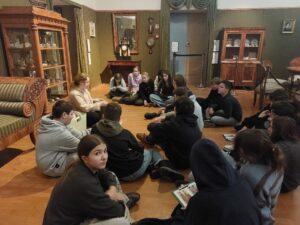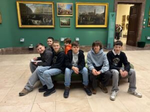 13 stycznia uczniowie klasy VI wraz z wychowawczynią kontynuowali swoje wizyty w różnych oddziałach Muzeum Narodowego. Tym razem uczestniczyli w warsztatach „Historia opowiedziana na obrazach” w Sukiennicach i „Historia mody” w Gmachu Głównym.