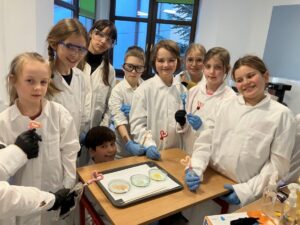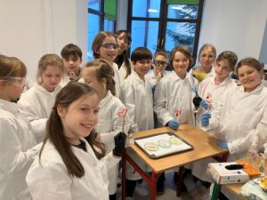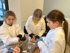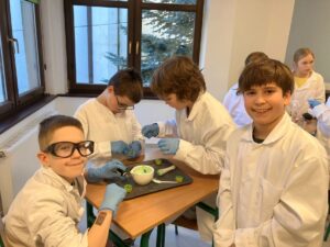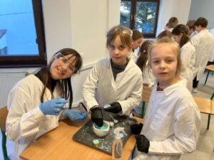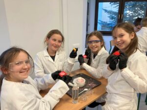 Podczas ostatnich zajęć Klubu Młodego Odkrywcy zrobiło się naprawdę… sercowo! Spotkanie poświęcone było tematyce walentynkowej. Uczniowie klasy trzeciej wcielili się w rolę młodych chemików i z ogromnym zaangażowaniem wykonywali efektowne doświadczenia: „Kryształowe serca” ,Musujące „love” – oraz „Krwawiące serca walentynkowe”. Zajęcia były nie tylko świetną zabawą, ale również okazją do rozwijania ciekawości, zadawania pytań i wspólnego odkrywania tajemnic nauki.