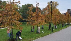 Zatrzymali się również przy pomniku Erazma Jerzmanowskiego, gdzie chwilę zadumali się nad jego zasługami, oraz oglądali stare fotografie parku umieszczone na tablicy informacyjnej – z zainteresowaniem porównując dawny wygląd parku z dzisiejszym.