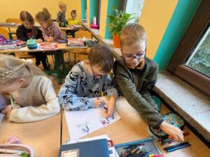 Z okazji Międzynarodowego Dnia Języka Ojczystego uczniowie klas 0-3 zastanawiali się, po co polskim literom kropki, kreski i ogonki. Poznali historię powstania polskiego alfabetu, próbowali czytać wyrazy bez znaków diakrytycznych. Na koniec wykonali komiksy na konkurs pod hasłem „Kropki, kreski, ogonki”. Zwycięzców poznamy niebawem.