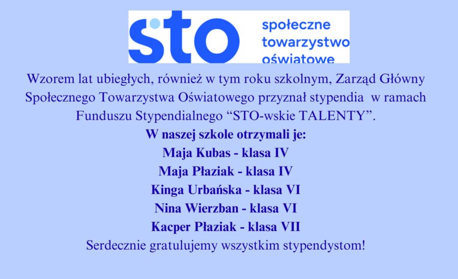 W bieżącym roku szkolnym stypendia „STO-wskie TALENTY” otrzymali: