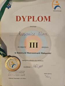 21 lutego w Dąbrowie Tarnowskiej odbyły się Halowe Mistrzostwa Małopolski Dzieci i Młodzików w Łucznictwie.🏹 Uczestniczyła w nich uczennica klasy trzeciej naszej szkoły – Nina Rusowicz. 🏹Miło nam poinformować, że Nina zajęła III miejsce w kategorii wiekowej młodzik młodszy. 🏹Serdecznie gratulujemy i życzymy kolejnych sukcesów!🏆🥉🏆