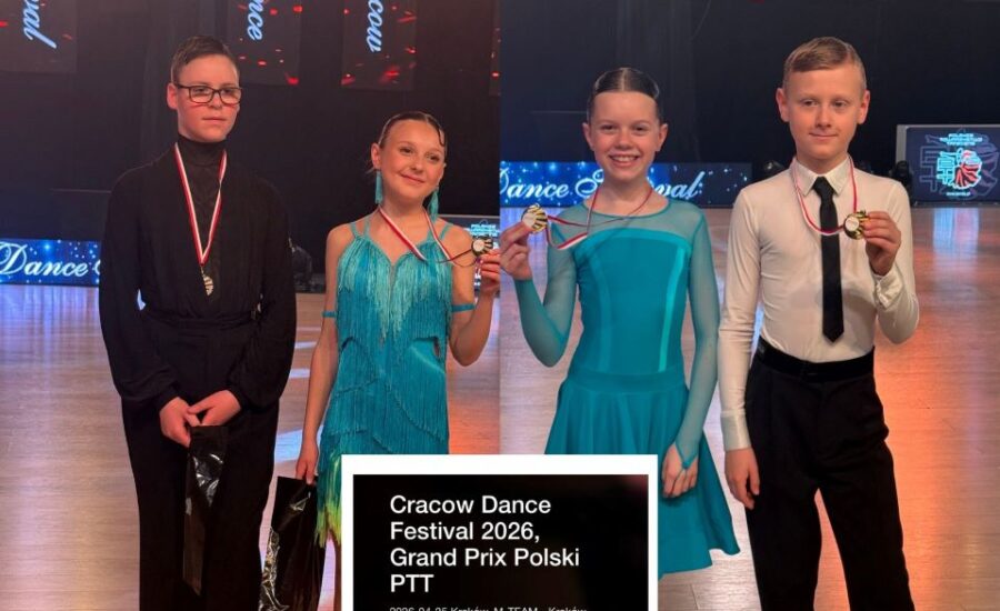 W dniach 25 – 26 kwietnia w Hali Stulecia KS Cracovia odbywał się Turniej Tańca Towarzyskiego Cracow Dance Festival 2026 Grand Prix Polski PTT organizowany przez KS M–Team Kraków pod patronatem honorowym Prezydenta Miasta Krakowa. W turnieju tym uczestniczyli uczniowie z naszej szkoły, którzy tradycyjnie zaprezentowali bardzo wysoki poziom umiejętności tanecznych. Ania Węgrzyn i Krzysztof Ślusarek z klasy czwartej zajęli I miejsce w kategorii wiekowej G 10-11, natomiast Szymon Ślusarek z klasy siódmej wraz z partnerką zajęli II miejsce w kategorii G 14-15. Serdecznie gratulujemy!