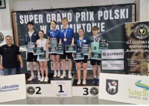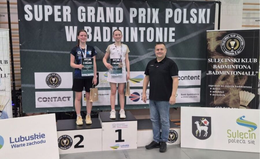 W dniach 10 – 12 kwietnia w Sulęcinie odbył się Super Gand Prix Polski Juniorów Młodszych i Młodzików w Badmintonie. Jest to druga, co do ważności po Mistrzostwach Polski impreza badmintonowa. Walczą między sobą najlepsi zawodnicy z całej Polski. W zawodach tych uczestniczyła uczennica klasy szóstej naszej szkoły Nina Wierzban, która uzyskała w tym turnieju świetne wyniki. Ninie wraz z kolegą udało się wywalczyć srebrny medal w kategorii A w grze mieszanej U-15 oraz złoto w grze singlowej kategoria B. Serdecznie gratulujemy i życzymy kolejnych sportowych sukcesów!