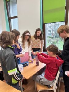 W dniach od 13 – 17 kwietnia obchodziliśmy Szkolny Tydzień Zdrowia. Było naprawdę smacznie, kolorowo i bardzo zdrowo! Uczniowie klas 4–8 z ogromnym zaangażowaniem odkrywali, że zdrowe jedzenie wcale nie musi być nudne. Na stołach królowały warzywa w trzech kolorach, a do tego powstawały pyszne warzywno-owocowo-jogurtowe koktajle bez dodatku słodkich substancji. Podczas lekcji edukacji zdrowotnej uczniowie analizowali też etykiety różnych artykułów spożywczych, zwracając szczególną uwagę na zawartość węglowodanów. A żeby teoria zamieniła się w praktykę, na wagach analitycznych odważali taką samą ilość sacharozy. Oj, wtedy naprawdę dało się zobaczyć, ile słodkich dodatków potrafi się „schować” w pozornie zwykłych przekąskach! Uczniowie dowiedzieli się również, jakie skutki dla organizmu może mieć nadmierne spożywanie słodyczy. Klasa 6 miała dodatkowo wyjątkowego gościa – panią psychodietetyk, która opowiedziała o tym, jak działa mechanizm uzależnienia od słodkiego smaku i jaki udział ma w nim dopamina. To była cenna i bardzo ciekawa lekcja! Nie zabrakło też kreatywności – chętni uczniowie przygotowali piękne plakaty promujące zdrowy styl życia i zasady prawidłowego odżywiania. Brawo dla wszystkich za pomysłowość, energię i świetną pracę!