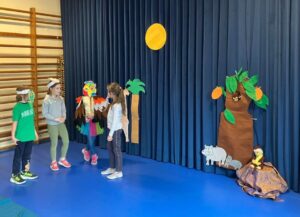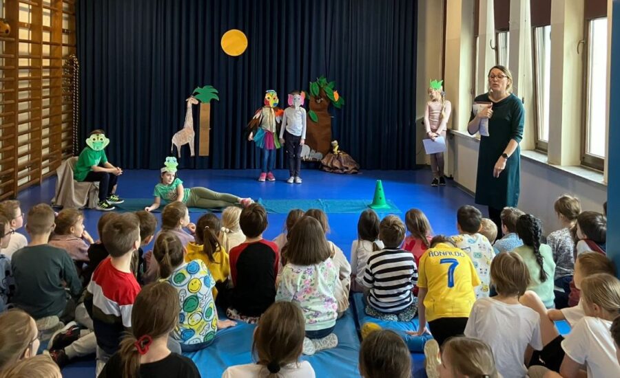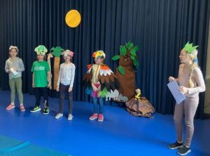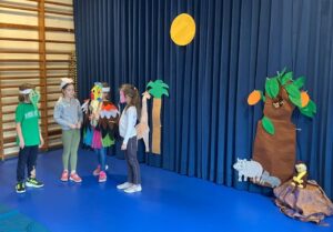 23 lutego Koło Teatralne z Języka Angielskiego wystawiło dla klas 0-3 sztukę: „The Elephant’s Child”, Scenariusz oparty został na opowiadaniu Rudyarda Kiplinga z cyklu Just So Stories (Takie sobie bajeczki), wyjaśniające w mityczny sposób, jak słonie zyskały trąby. Bajka opowiada o ciekawskim słoniku, któremu krokodyl wyciągnął nos.