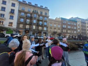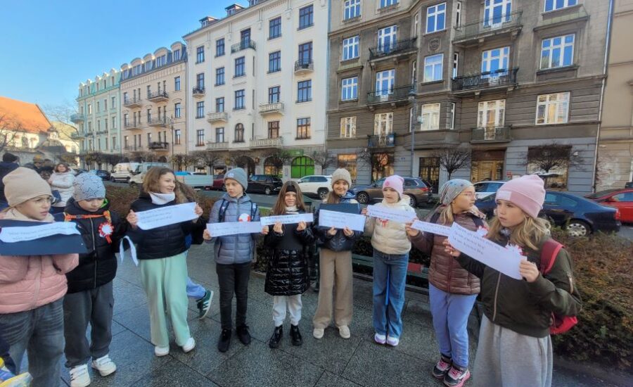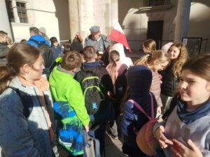 Miło nam poinformować, że uczniowie klasy czwartej naszej szkoły znaleźli się w gronie laureatów XIX edycji Gry terenowej „Śladami niepodległości” organizowanej przez Zespół Szkół Ogólnokształcących STO im Juliusza Słowackiego w Krakowie i Muzeum Krakowa. Gra wypełniona była zadaniami w ramach tematu „Od suwerenności do niepodległości (od 1025 do 1918 roku)”. Ostatnie zadanie uczniowie wykonali na Wawelu w towarzystwie samego Naczelnika Józefa Piłsudskiego. Uroczysta gala podsumowująca wydarzenie odbędzie się w Pałacu Krzysztofory w dniu 14 listopada o godzinie 10.00. Serdecznie gratulujemy!