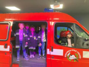2 października uczniowie klasy zerowej wybrali się do Interaktywnego Centrum Edukacji Przeciwpożarowej w Dobczycach. Przeszli tam interaktywną ścieżkę edukacyjną, która została podzielona na sektory tematyczne, dotyczące m.in. zagrożeń w domu, bezpieczeństwa na akwenach wodnych, w lesie czy bezpieczeństwa w ruchu drogowym. Uczestnicy zajęć mogli wcielić się w rolę strażaków, odsłuchać nagrań autentycznych zgłoszeń alarmowych, przebrać się w stroje strażackie czy wejść do prawdziwego wozu strażackiego. Dodatkowo wszyscy odbyli przygotowanie pierwszej pomocy przedmedycznej.