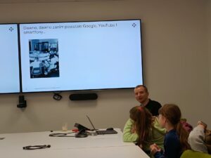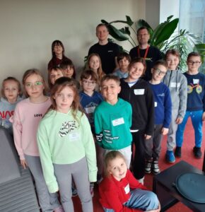 17 kwietnia trzecioklasiści odwiedzili krakowskie biuro Sabre przy ul. Księdza Józefa Tischnera 8. Sabre to firma technologiczna, tworząca rozwiązania dla linii lotniczych, biur podróży i innych partnerów rynku turystycznego. Dzieci miały okazję zobaczyć nowoczesne miejsce pracy i dowiedzieć się, jak wygląda codzienność w dużej firmie IT. Podczas spotkania uczniowie poznali także zawody związane z tworzeniem i rozwijaniem produktów oraz z pracą zespołów inżynierskich. O swojej pracy opowiedzieli im Michał Swatowski i Marek Rusowicz, a rozmowa stała się inspirującą lekcją o tym, jak ważne są współpraca, kreatywność i umiejętności techniczne. Bardzo dziękujemy tacie Niny Rusowicz oraz tacie Weroniki Swatowskiej za zaangażowanie w innowację pedagogiczną „Gdy dorosnę zostanę…”, której celem jest przybliżanie dzieciom różnych ścieżek zawodowych i pomaganie im w odkrywaniu własnych zainteresowań.